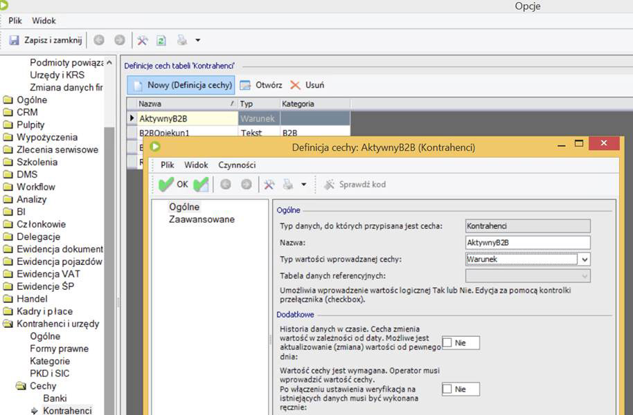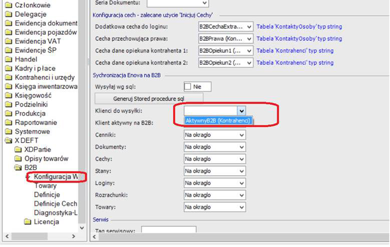 W kolejnym kroku należy wybrać cechę która opowiada na wysyłkę danych na B2B