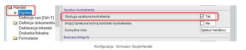 Narzędzia/Opcje/Handel/Ogólne/Obsługa opiekuna kontrahenta