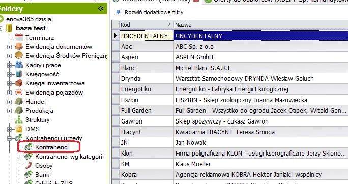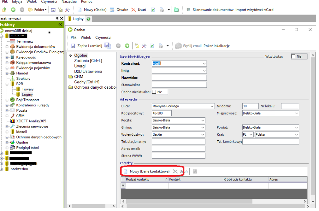 Po wejściu na nią pojawi się lista osób przypisanych do wszystkich kontrahentów. Tworząc login należy utworzyć nową osobę i przypisać ją do kontrahenta