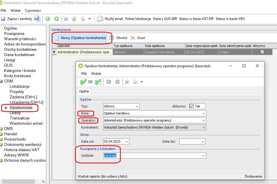 Uruchomić opcję: Obsługa Opiekuna kontrahenta