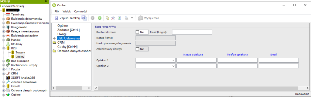 Ustawienie kont użytkowników dla modułu B2B